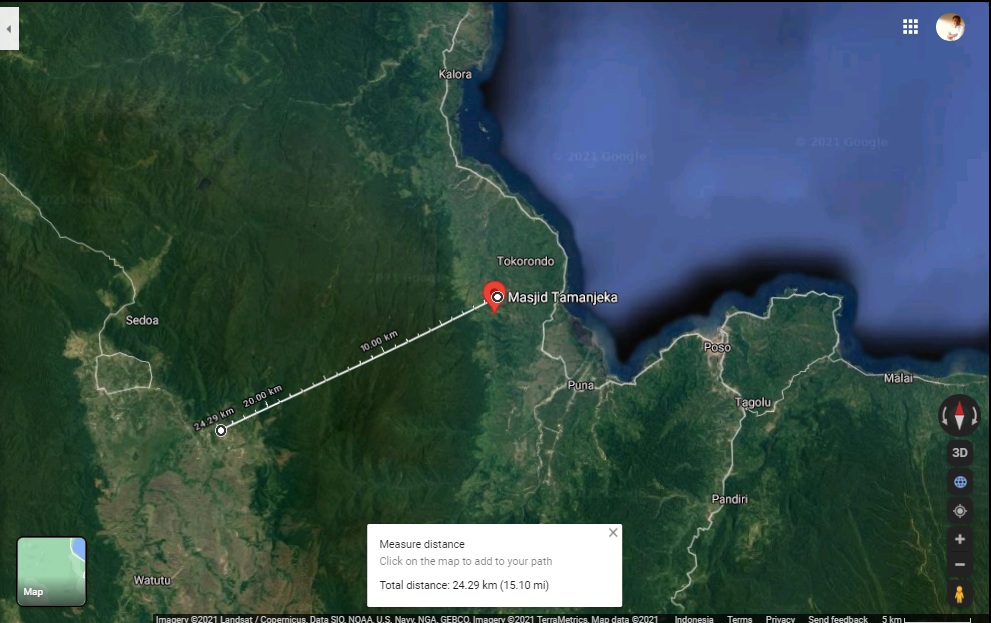 Lalu bagaimana ceritanya kemudian mereka tiba di Kalemago? Tentu saja mudah, areal perkebunan warga ini tempat aman buat mereka. Jarak Tamadue ke Kalemago 1,1 kilometer melalui perkebunan warga. Di sana mereka bisa singgah pula di Maholo.