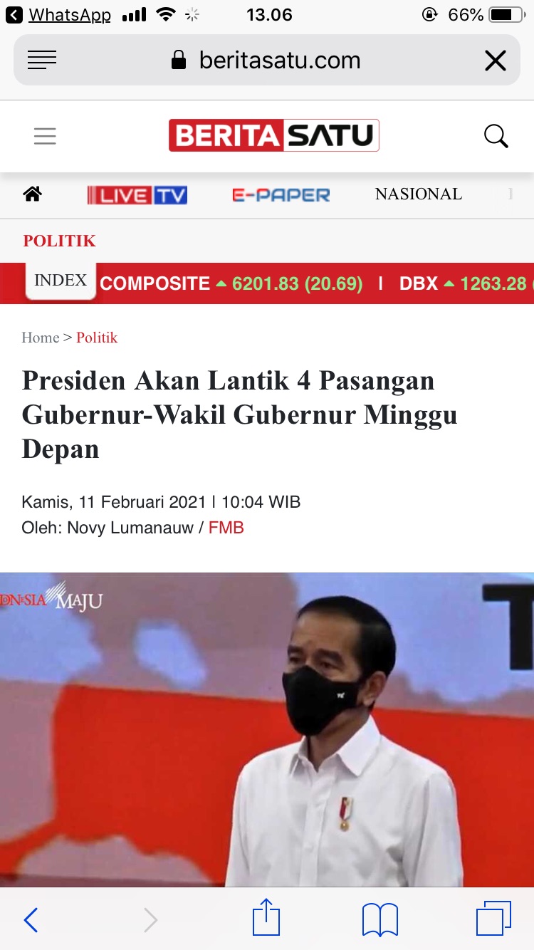 Sejak Kamis, 11 Februari 2021 beredar kabar bahwa Presiden RI Joko Widodo akan melantik Rusdi Mastura – Ma’mun Amir, Gubernur dan Wakil Gubernur Terpilih hasil Pemilihan Kepala Daerah Sulawesi Tengah 2020.