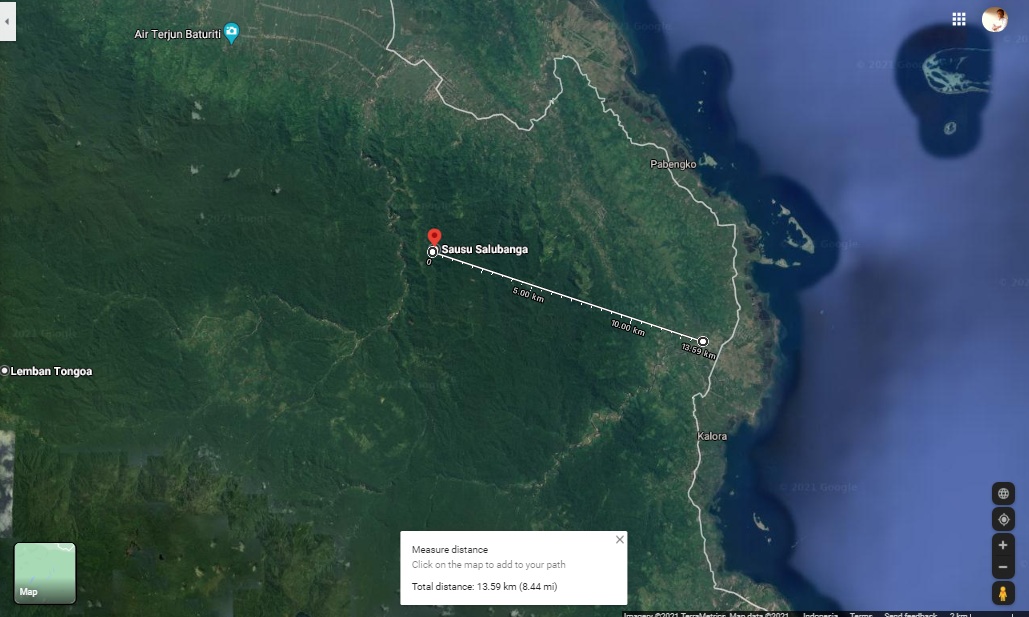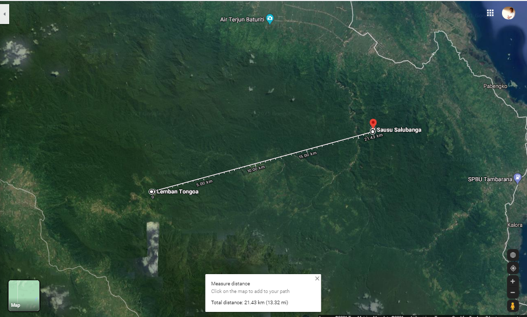 Adapun jarak dari Lembantongoa ke Salubanga hanya sekitar 21,43 kilometer. Artinya itu bisa ditempuh dengan jalan kaki paling lama dua jam bagi penduduk lokal atau kurang lebih tiga jam lebih bagi yang lain.