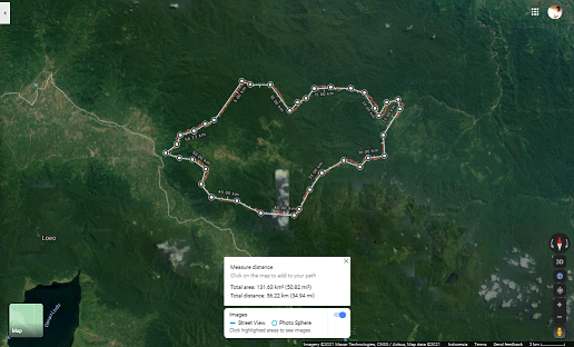 Dari pengukuran menggunakan menu measure distance yang tersedia di Google Maps dapat diketahui luasan area pergerakan Ali Kalora dan kelompoknya pada cakupan areal seluas 92,71 kilometer per segi (dengan asumsi garis lurus). Namun dari informasi yang ada diketahui mereka menggunakan jalur sungai untuk bergerak dari Lembantongoa, Sigi ke Salubanga, Parigi Moutong dan Poso Pesisir Utara, Poso. Sementara, Salubanga sendiri mencakup areal seluas 45,14 kilometer per segi.