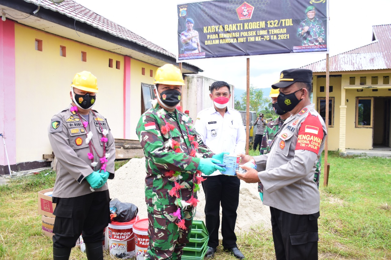 Komandan Korem 132 Tadulako, Brigadir Jenderal TNI Farid Makruf, Rabu, 13 Oktober 2021, secara simbolis menyerahkan langsung bantuan rehabilitasi Rumah Dinas Kepolisian Sektor Lore Tengah, Kabupaten Poso, Sulawesi Tengah. Ini adalah bagian dari rangkaian Hari Ulang Tahun ke-76 Tentara Nasional Indonesia.