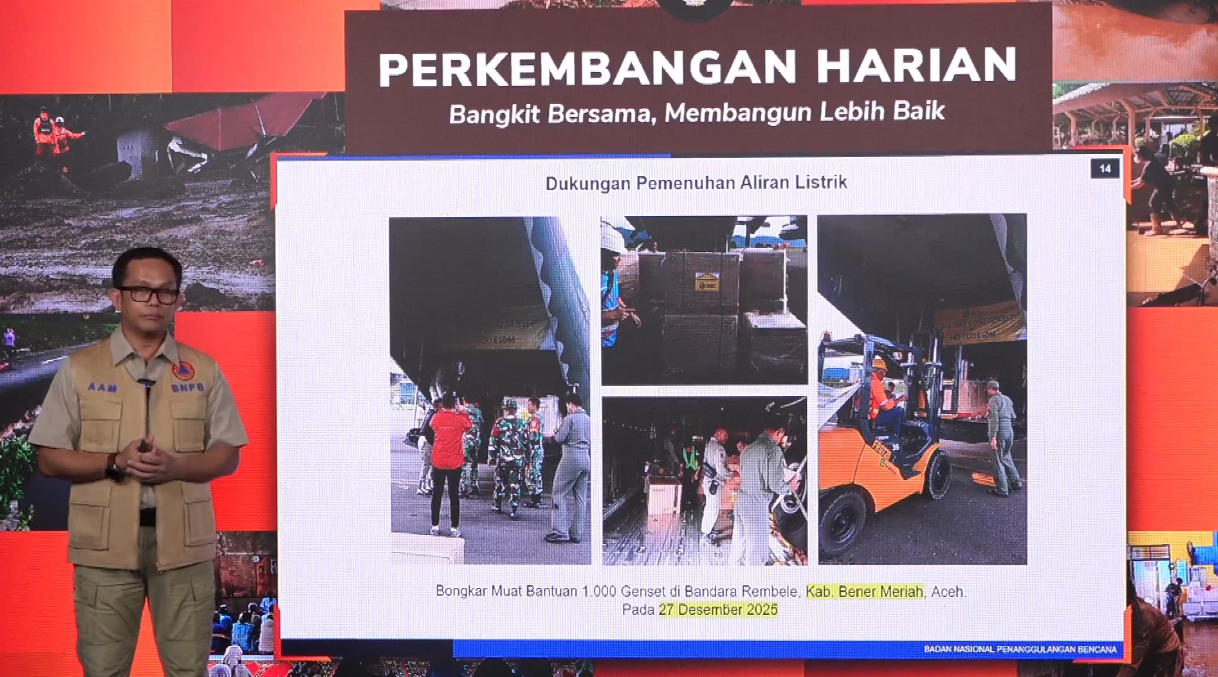 “Menteri ESDM mengirimkan 1.000 genset yang akan dibagi ke tiga provinsi. Saat ini sudah diterima di posko kami di Bener Meriah sebanyak 125 genset,” kata Kepala Pusat Data, Informasi, dan Komunikasi Kebencanaan BNPB, Abdul Muhari, dalam konferensi pers di Jakarta, Minggu (28/12).
