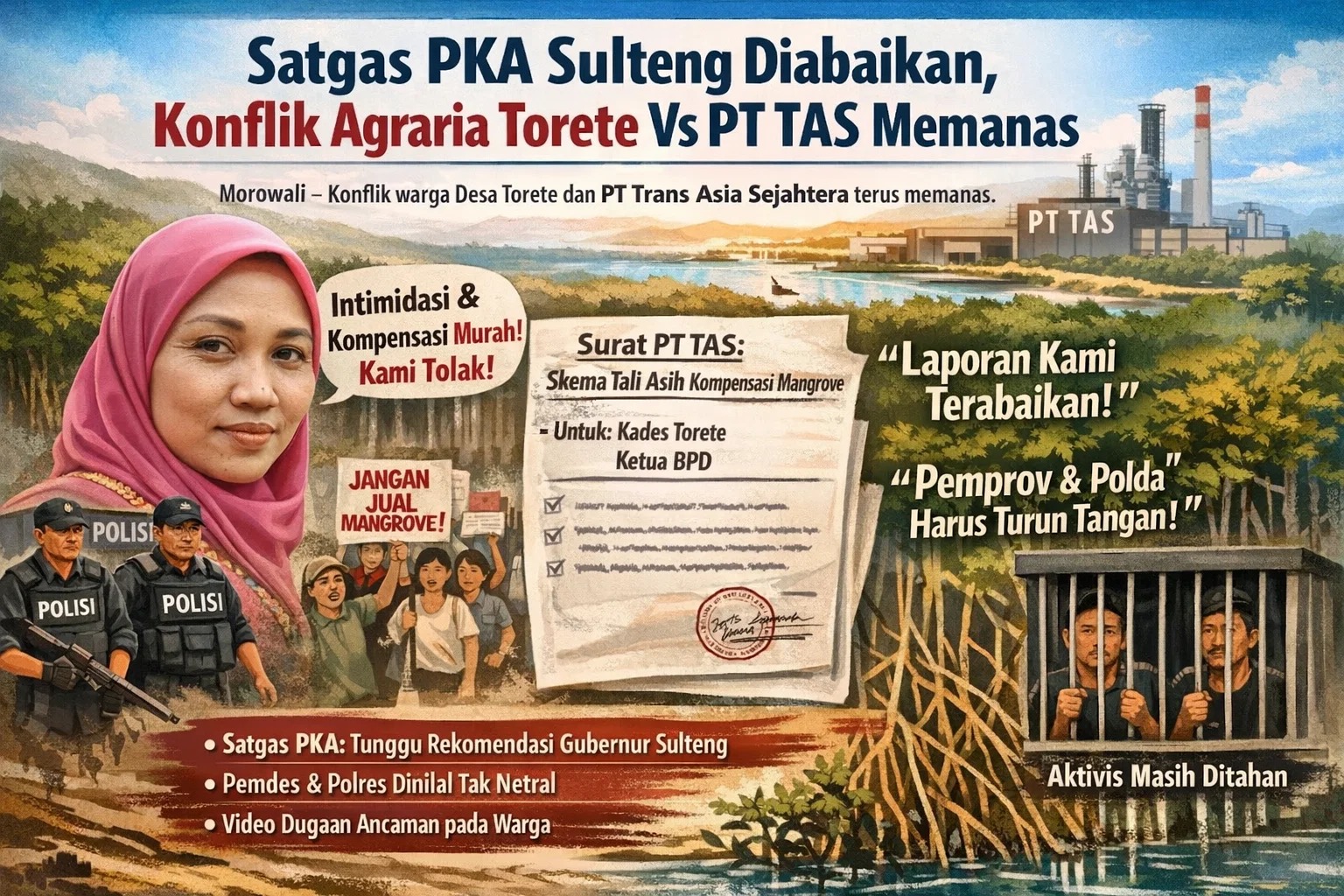 Konflik agraria antara warga Desa Torete dan PT Teknik Alum Service (TAS) terkait rencana pembangunan kawasan industri PT Morowali Industri Sejahtera (MIS) dalam proyek strategis nasional (PSN) NEMIE terus memanas. Warga menilai PT TAS mengabaikan rekomendasi Satuan Tugas Penyelesaian Konflik Agraria (Satgas PKA) Sulawesi Tengah.